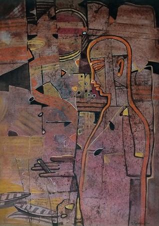 In the works of Sajal Kanti Mitra, figuration and abstraction exist in a continuous, deliberate dialogue. His paintings unfold within a threshold space where faces, bodies, and gestures momentarily emerge from layered fields of colour, only to recede again into atmosphere and rhythm. Rather than offering linear narratives, the works propose states of becoming, images held in suspension, as if caught between thought and emotion.