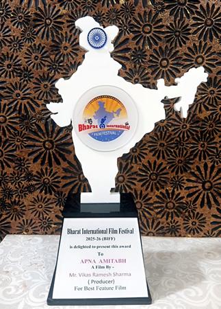 मुंबई में आयोजित भारत इंटरनेशनल फ़िल्म फेस्टिवल 2025-26 में सिनेमा और सामाजिक सरोकारों को समर्पित फिल्मों को सम्मानित किया गया। इस प्रतिष्ठित समारोह में फिल्म ‘अपना अमिताभ’ को बेस्ट फ़िल्म कैटेगरी में अवार्ड प्रदान किया गया, वहीं सामाजिक मुद्दों पर सशक्त फिल्म निर्माण के लिए फिल्म निर्माता विकास शर्मा को आइकॉनिक भारत गौरव पुरस्कार से सम्मानित किया गया